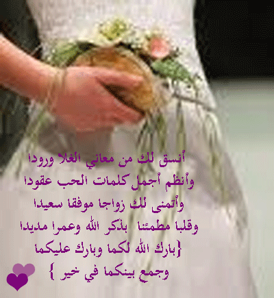 الـف مـبروكـ الزواج تعيـشي معـاهو مسرورة فـي بـيـتكـ تكـوني امــــيرة صغــرة مستورة وكـوني انـتي نعـمة الـبت عن افـعالة مسـؤلة اديـهــــو حـــب.